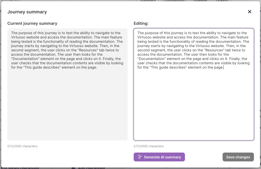 Once you've reviewed the summary, and are happy with it, click save changes. You and your colleagues will now be able to see this summary on the right-hand panel of the journey view.